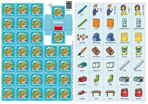 - Pexeso obsahuje sadu párových karet s obrázky pro hledání shodných dvojic.