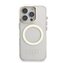 Guess IML Gold Outline Stand Camera Frame MagSafe Zadní Kryt pro iPhone 16 Pro Max Transparent