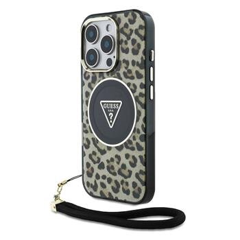 Guess IML Leopard Triangle Logo Strap MagSafe Zadní Kryt pro iPhone 16 Pro Max Brown