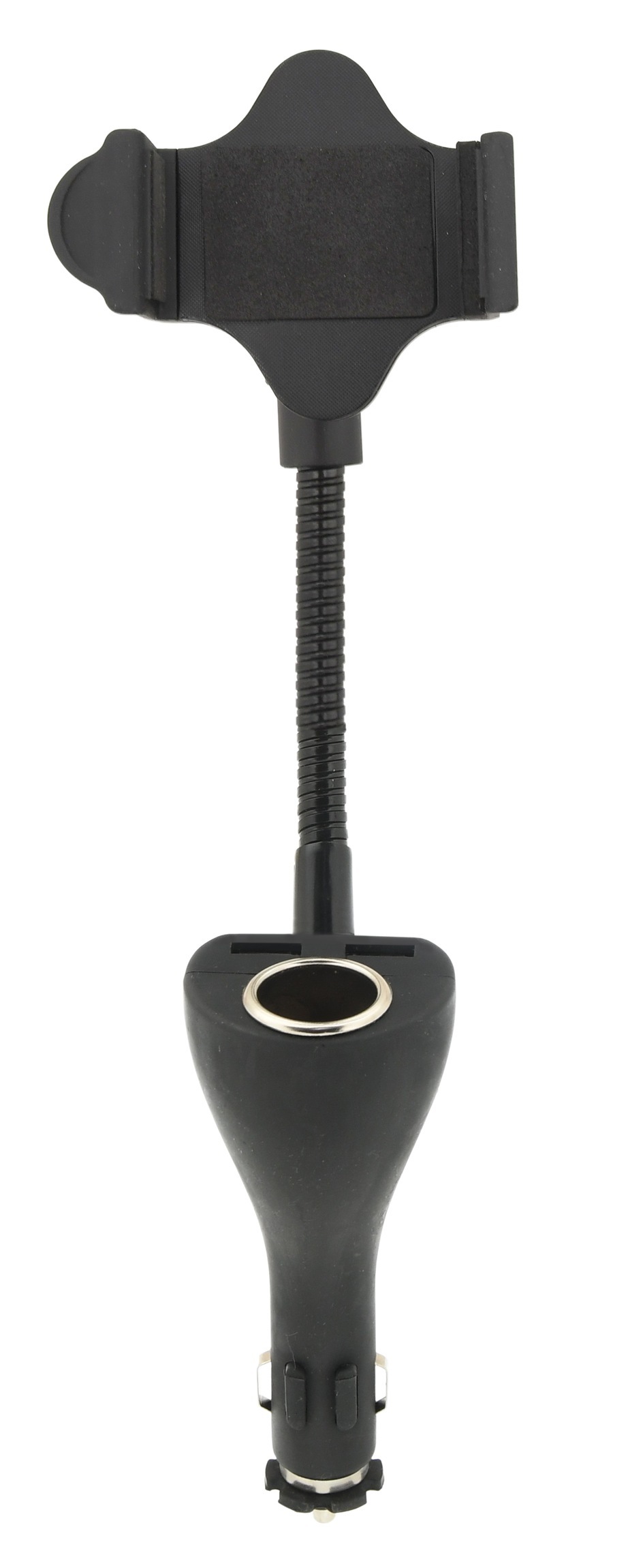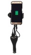 Držák telefonu do autozásuvky 12/24V. Držák je možné plně přizpůsobit potřebám, díky kloubu zajišťujícímu libovolné natočení a hlavně pomocí pružného, plně ohebného těla. Držák je vhodný k uchycení telefonu šíře 55-80 mm. Přestože se držák umisťuje do zásuvky zapalovače 12/24V, zásuvka zůstane...