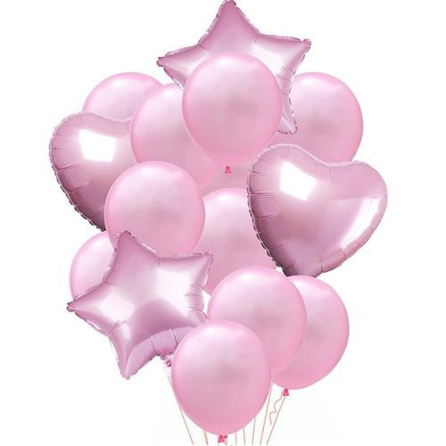 Sada prémiových latexových a fóliových balonků. Balení obsahuje 2 kusy foliových růžových srdcí, 2 kusy foliových růžových hvězdiček o průměru 45 cm a 10 kusů latexových růžových balonků o průměru 30 cm. Balonky jsou vhodné na nafouknutí heliem i vzduchem. Buket je vhodný na gender nebo baby...