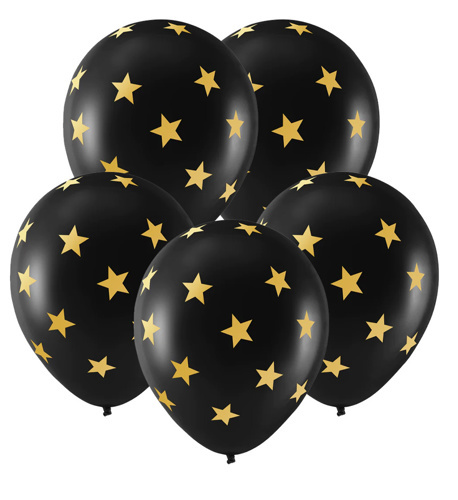 Černé balonky s potiskem zlaté hvězdy - 30 cm, 5 ks