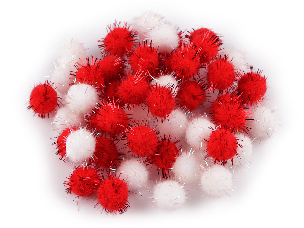 Malé bambulky ozdobené lurexem s duhovým AB efektem.Použití: Bambulky jsou vhodné na vánoční zdobení, na výrobu sněhuláčků, andělíčků apod. Můžete je také využít na originální ozdobení čepic, svetrů, šálů nebo kabelek. číst celé
