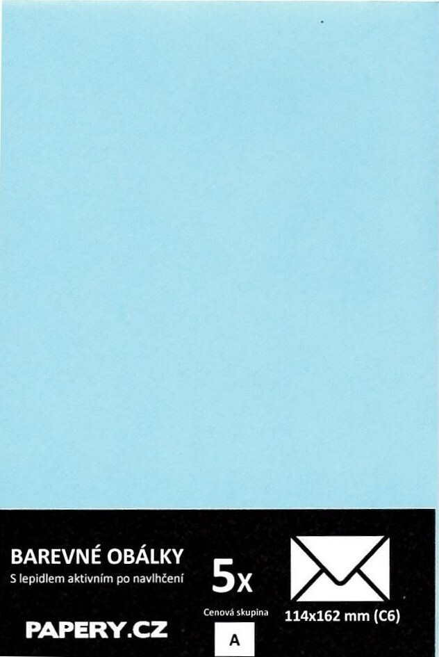 HYBLER S.R.O. barevná obálka 114x162 mm PASTELOVÁ MODRÁ, 5 kusů, 115 gm2, olizová HBLR116