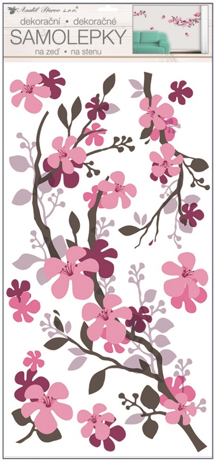 Samolepky na zeď větvička hnědorůžová, 60x32cm