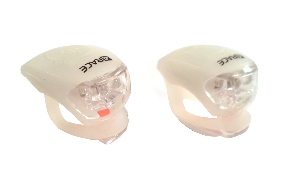 Blikačka 4RACE přední a zadní. Barva:  bílé Diody: 2 LED bílé,2 LED červené Funkce: 2 Balení obsahuje baterie: ano (2 x 2 CR2032) Uchycení: gumový pásekBaleno na kartě 4RACE. číst celé