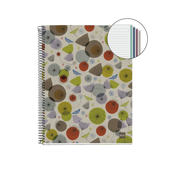Navíc jsou stránky barevně rozděleny do čtyř odlišných tónů, což podporuje organizaci a dělá zápisky vizuálně přehlednějšími. Formát A5 je kompaktní, ideální pro práci doma, v kanceláři i na cestách.