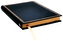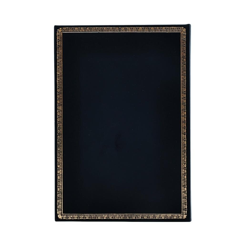 Klasyczna czarna okładka z delikatnie tłoczoną ramką na brzegu oprawy