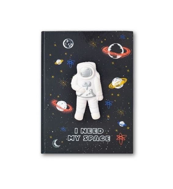 Notatnik A5 w twardej oprawie. Notatnik w czarnym kolorze na froncie posiada grafiki w tematyce kosmosu. Na środku okładki znajduje się mięciutki gniotek w kształcie kosmonauty. 80 kartek w kratkę. číst celé