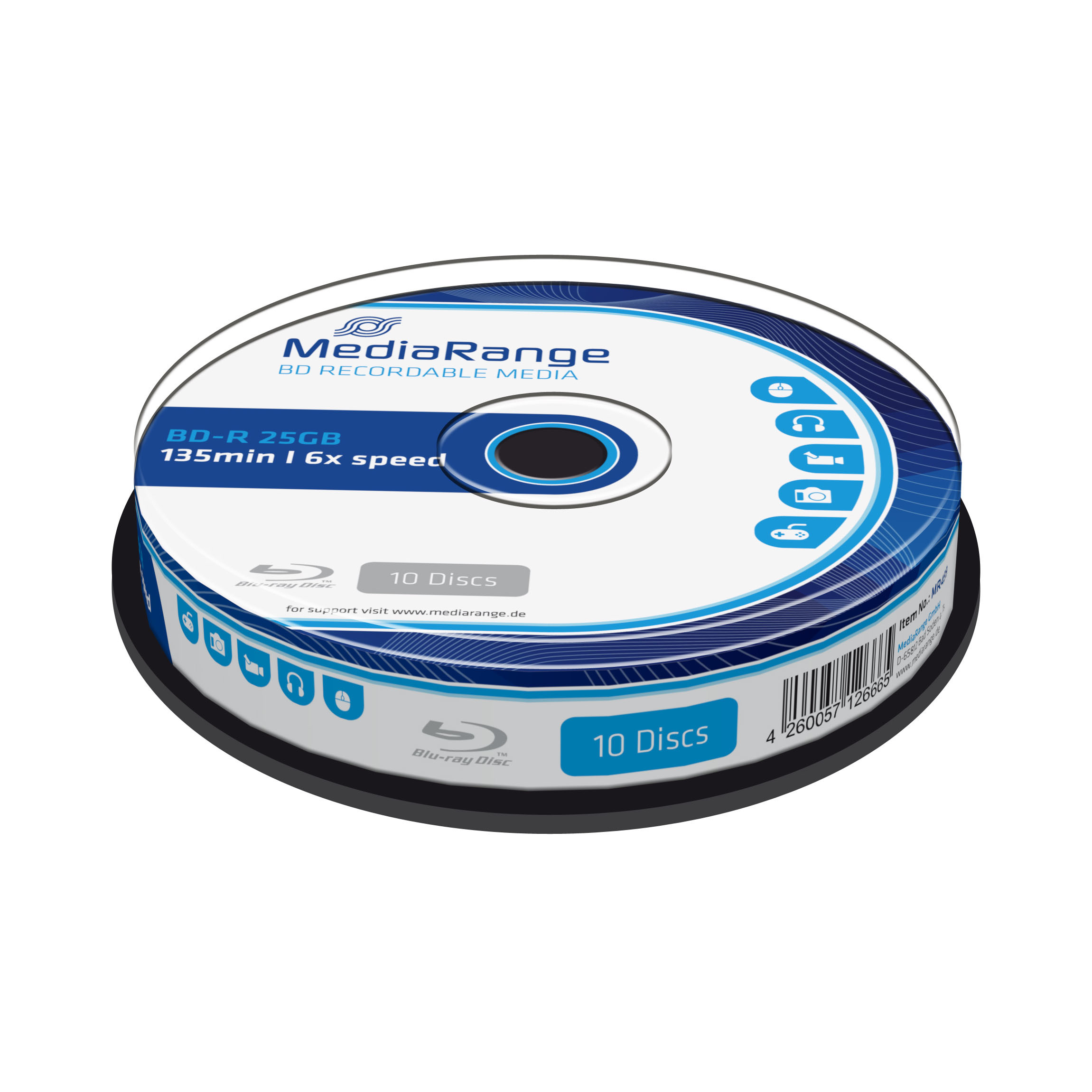 MEDIARANGE BD-R BLU-RAY 25GB 6x spindl 10ks