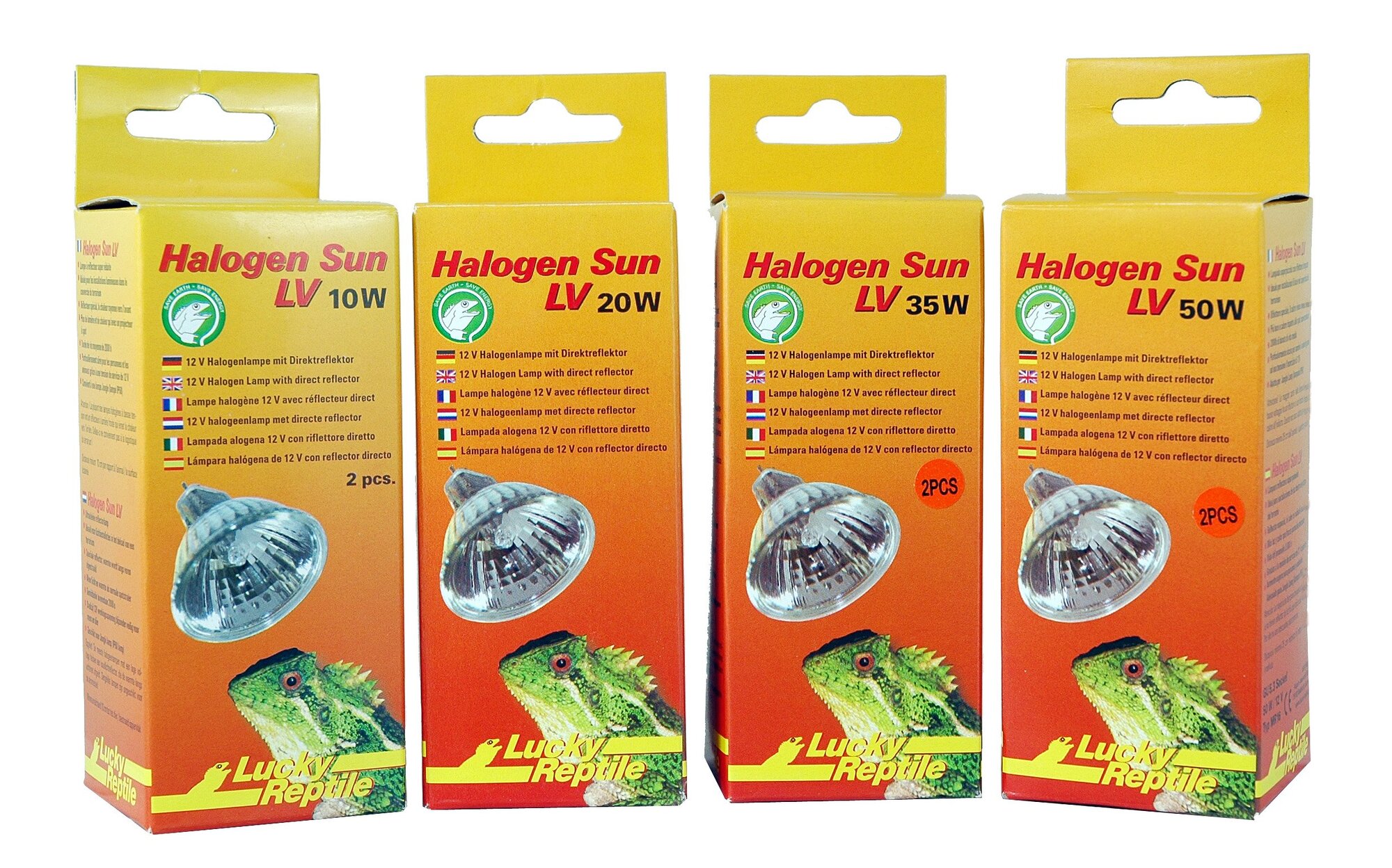 Malé bodové halogeny pro osvětlení a ohřevterária. Promyšlená konstrukce reflektoru směřuje světlo a teplo předsamotný halogen, tedy na místo, na které je namířený. Tím se znatelněliší od průmyslově vyráběných halogenů, určených pro domácípoužití. Tyto průmyslové halogeny nejsou vhodné pro...