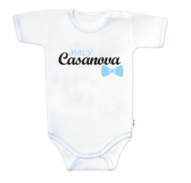 Body krátký rukáv s vtipným textem Baby Nellys, Malý Casanova, kluk, vel. 62; 62 (2-3m)