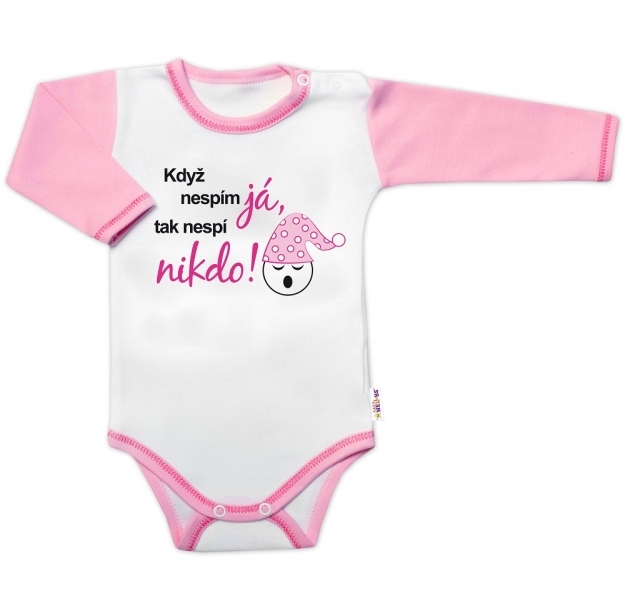 Body dl. rukáv s vtipným textem Baby Nellys, Když nespím já,tak nespí nikdo!, vel.86,holka; 86 (12-18m)