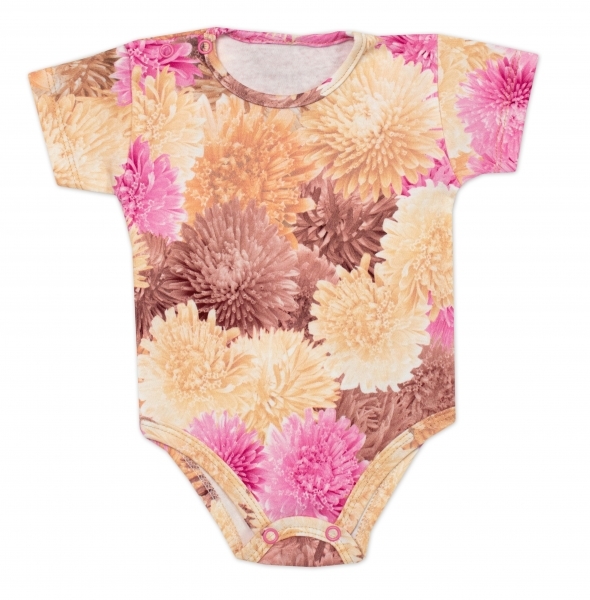 Body kr. rukáv Astry, bavlna, zapínání u krku, Mrofi, růžová/ecru, vel. 80; 80 (9-12m)
