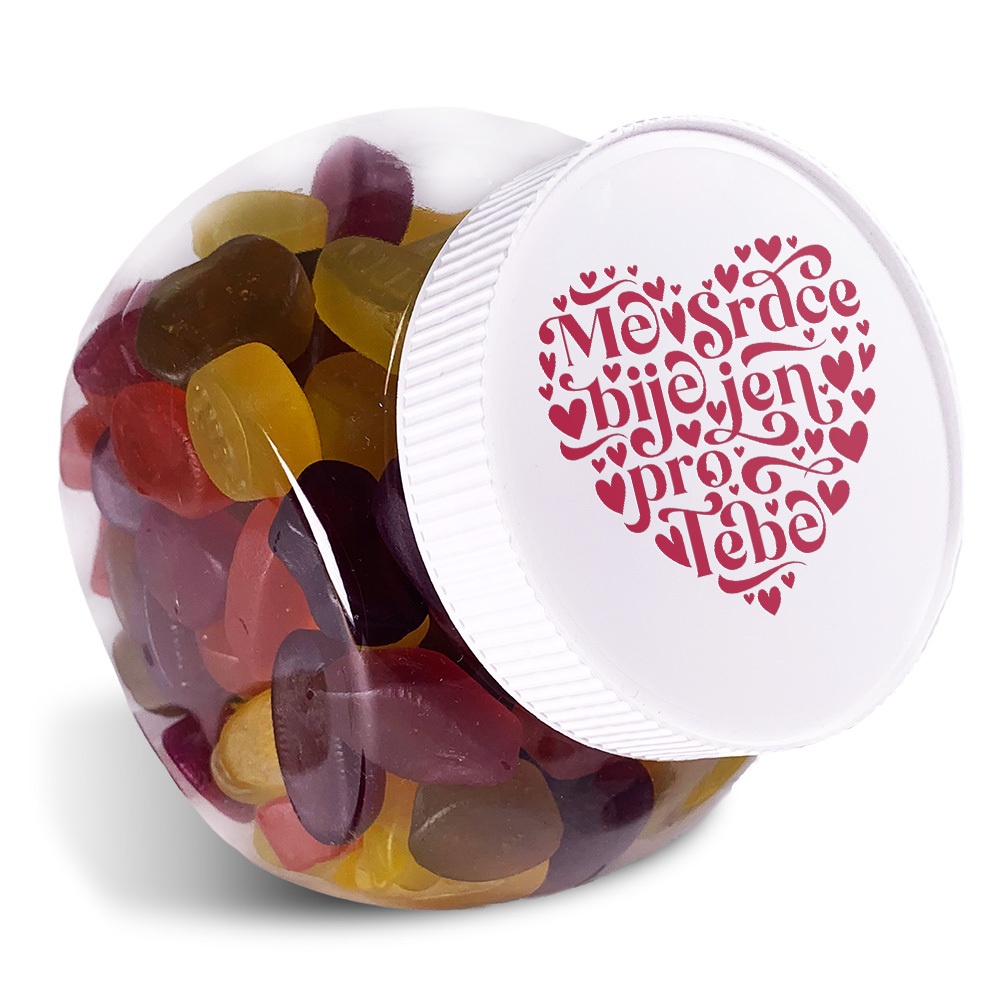 Gumové bonbóny s originálním motivemOchutnejte výborné gumové bonbóny různých příchutí a dopřejte sobě nebo vašim blízkým požitek z mlsání. Na víku nádoby je personalizované věnování pro každého, komu chcete udělat radost.  Vlastnosti:objem 1 litrrozměry nádoby 140 x 140 x 100 mmmateriál nádoby... číst celé