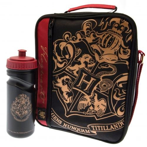 Box na svačinu s láheví na pití Harry Potter: Erb Bradavic - Hogwarts (27 x 21 x 9 cm|láhev 17 x 6 cm) červený polyester