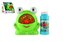Bublifuk stroj žába plast 11x13cm na baterie + náplň 2 barvy v krabičce 17x16,5x12cm