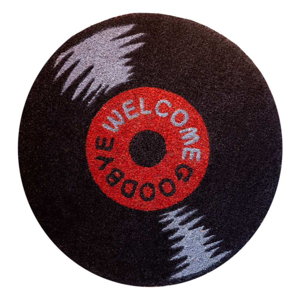 Kulatá rohožka Vinylova deska: Vítejte - Sbohem (60 x 40 cm) černá