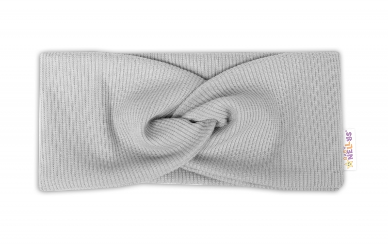 Baby Nellys Hand Made Dvouvrstvá žebrovaná čelenka, šedá, 92/98; 92/98 (18-36m)