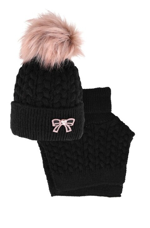 Komplet AJS 48-352 Czapka+golf dziewczęcy czarny 50-52 cm