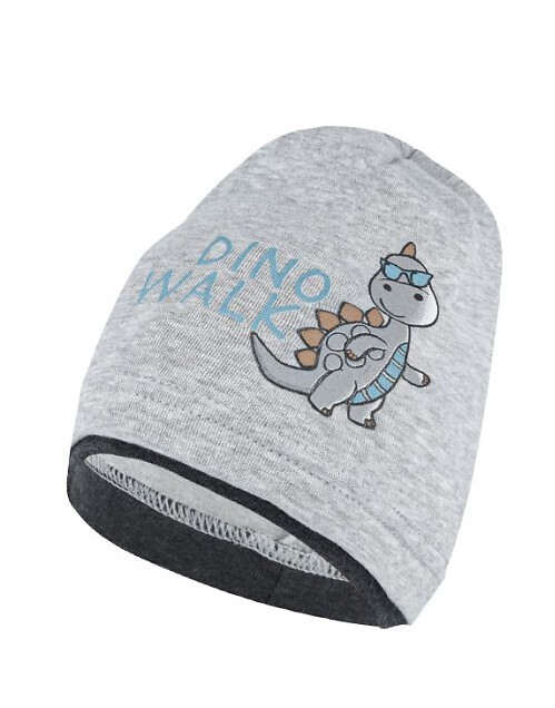 Wiosenna czapka chłopięca- cienka bawełna- otok z kontrastującym wykończeniem- z przodu kolorowa aplikacja z dinozaurem číst celé