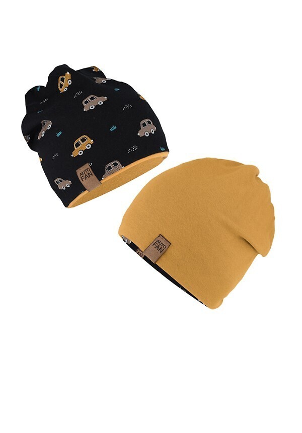 Czapka AJS 50-076 dwustronna dziecięca czarny-musztarda 52-54 cm
