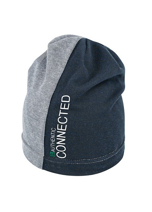 Wiosenna czapka chłopięca- dwukolorowa, cienka bawełna- ozdobny napis číst celé