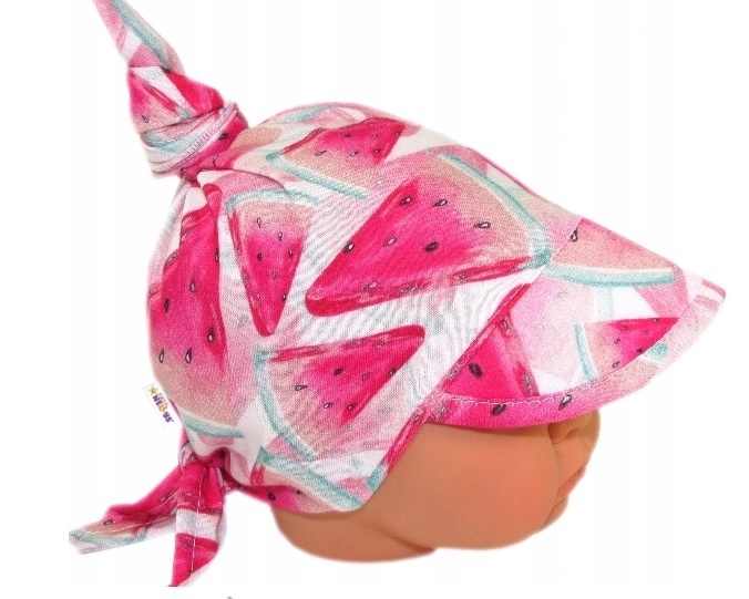 Baby Nellys Dětský bavlněný šátek s kšiltem na zavazování, meloun - růžová; 68-86 (6-18m)