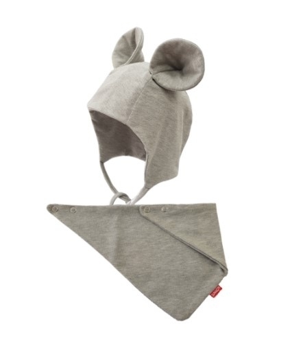 Bexa Bavlněná dvouvrstvá čepice na zavazování Miki + šátek - šedá