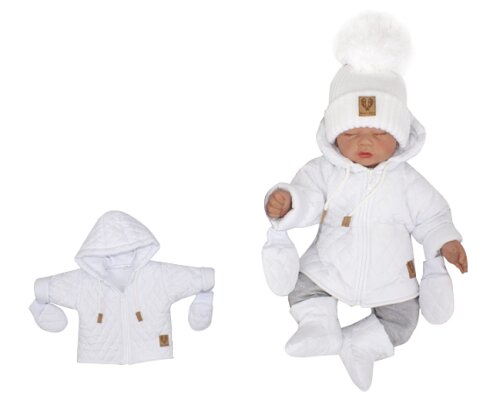 Z&Z Zimní prošívaná bundička s kapucí + rukavičky - bílá; 56 (1-2m)