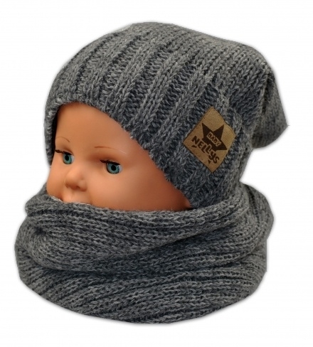 BABY NELLYS Podzimní/zimní čepice s komínkem - tm. šedá melír