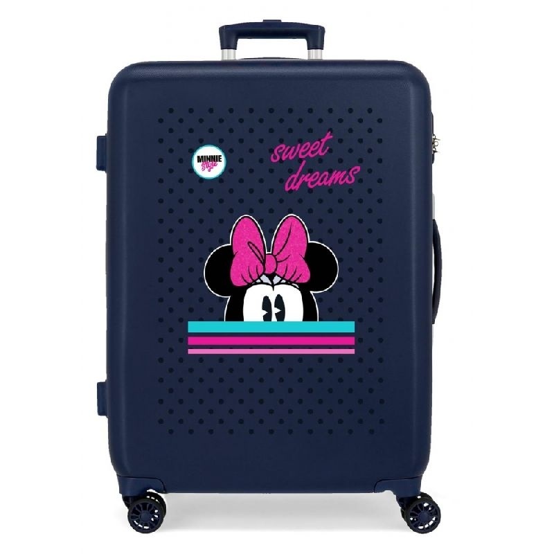 JOUMMABAGS Cestovní kufr ABS Minnie Sweet Dreams 68 cm Materiál: ABS plast Rozměr: 68x48x26 cm, objem 70 l Cestovní kufr ABS je luxusní plastový kufr vyrobený z pevného ABS plastu a má 4 otočná kolečka, integrovaný zámek s číselným kódem. číst celé