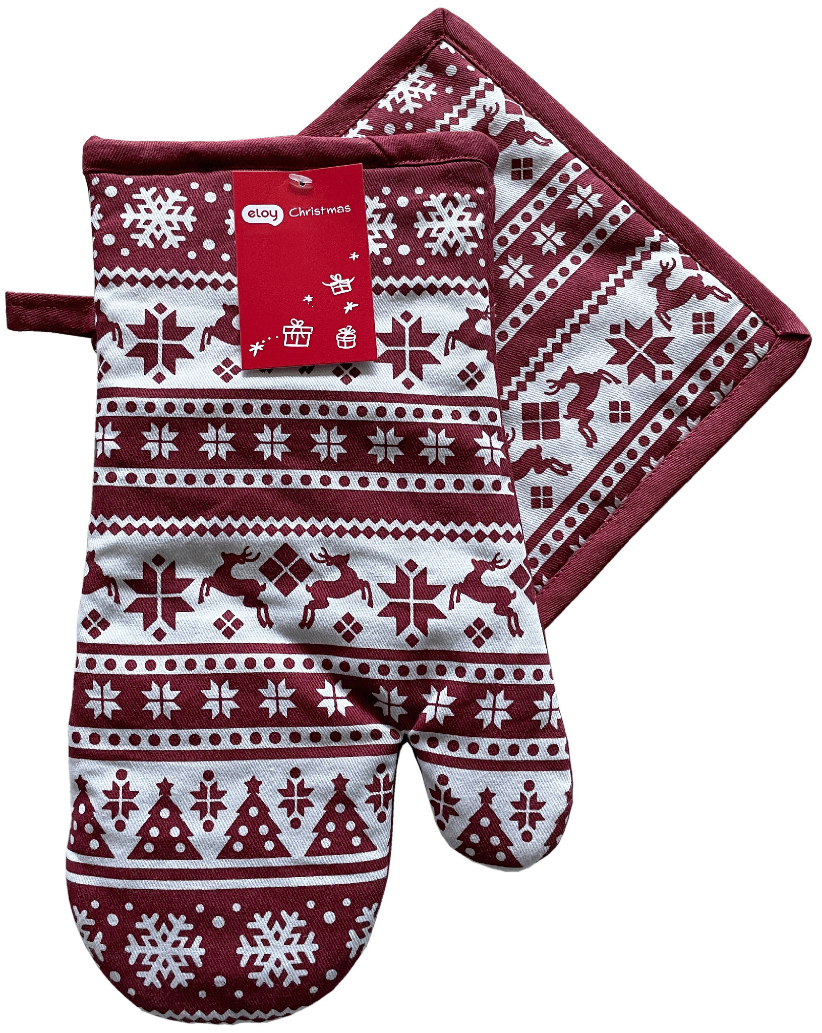 Kuchyňský set rukavice/chňapka CHRISTMASSY bílá/vínová 18x30 cm/20X20 cm ESSEX
