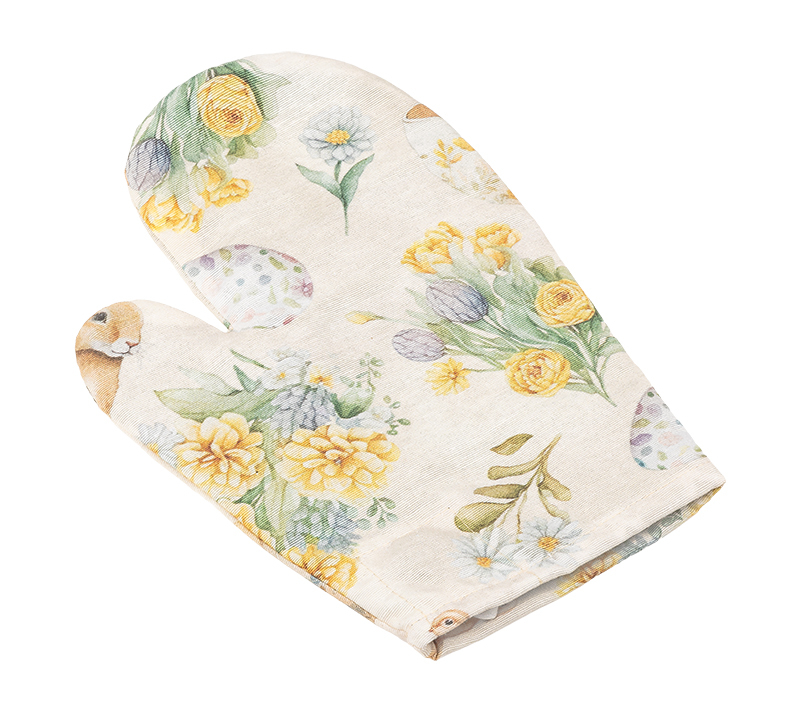 Kuchyňská chňapka - Velikonoce - Zajíček, květ béžová, žlutá - 28x18 cm