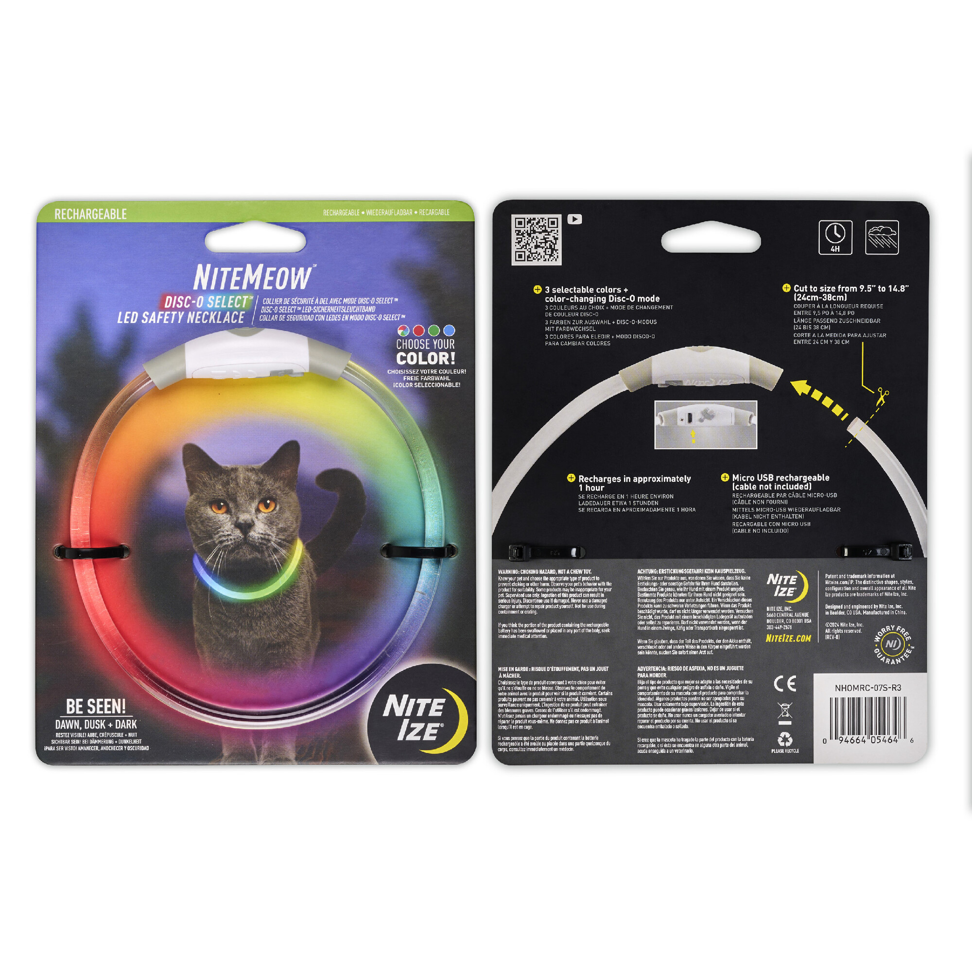 Nabíjecí LED bezpečnostní obojek Nite Ize NiteMeow™ Rechargeable LED Safety Necklace - Disc-O Select™