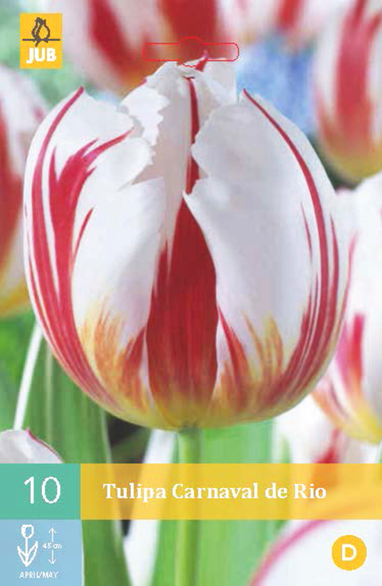 Druh: TULIPÁNZemě původu: HolandskoVelikost cibule: obvod 11-12 cmVýška rostliny: 45 cmOdrůda:CARNAVAL DE RIO: 1 karta á 10 ks cibulí Cibuloviny balené v kartách s barevným obrázkem. Základní údaje o pěstování formou piktogramu. Cibuloviny nejsou mořené. číst celé