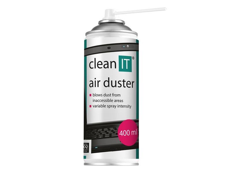 Vzduch stlačený CLEAN IT 400ml je ideálním pomocníkem pro odstranění prachu a nečistot z vašich elektronických zařízení, klávesnic, fotoaparátů nebo často opomíjených zákoutí doma i v kanceláři.