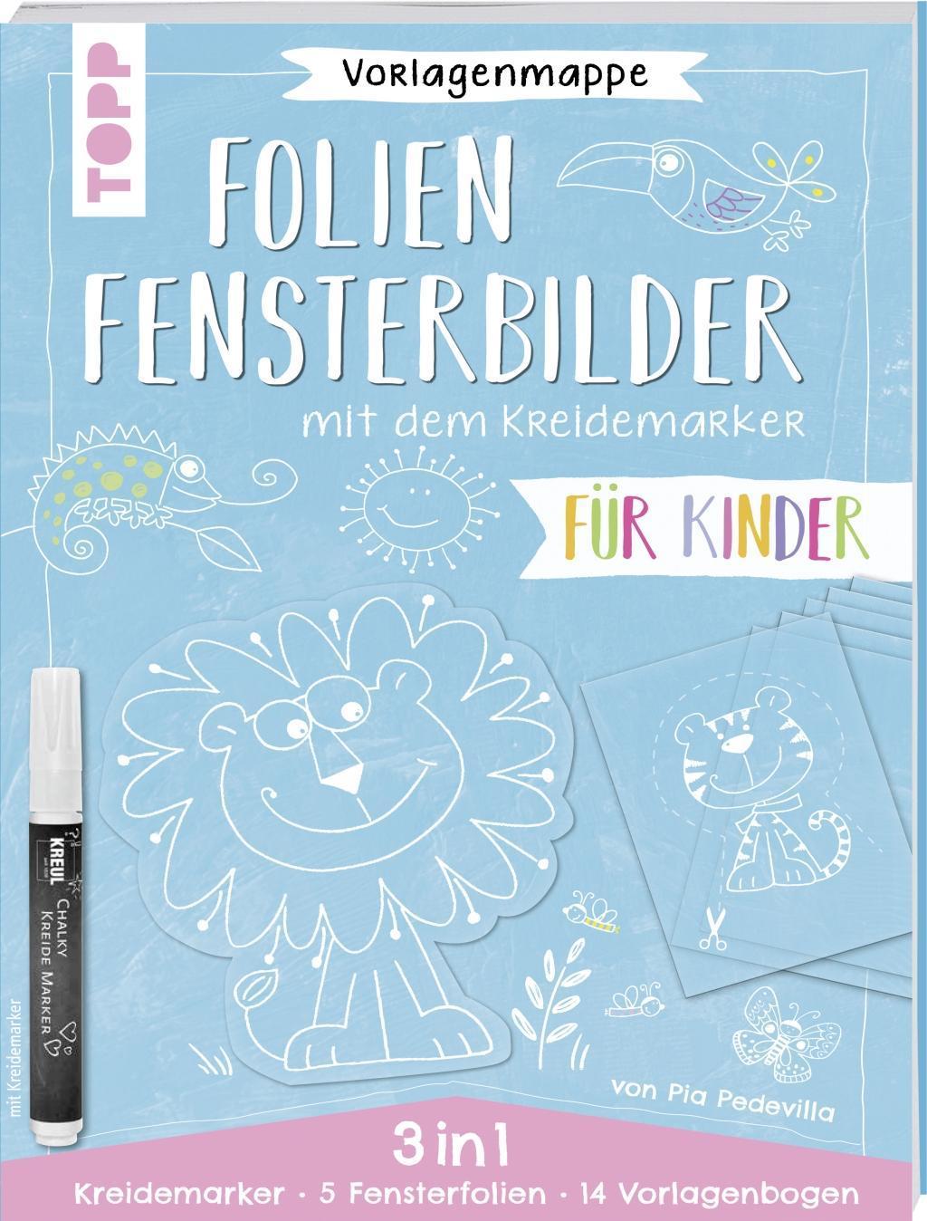 Vorlagenmappe 3 in 1 - Folien-Fensterbilder mit dem Kreidemarker - Für Kinder. Inkl. 5 Fensterfolien zum Bemalen und Ausschneide (německy)