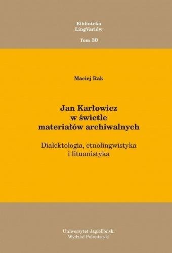 Książka dotyczy działalności naukowej Jana Karłowicza, a dokładniej trzech dziedzin, do których wniósł on znaczny wkład dialektologii, etnolingwistyki i lituanistyki. Podstawą materiałową są tu archiwalia tego badacza (kartoteki Słownika gwar polskich, Słownika mitologii polskiej i Słowniczka...