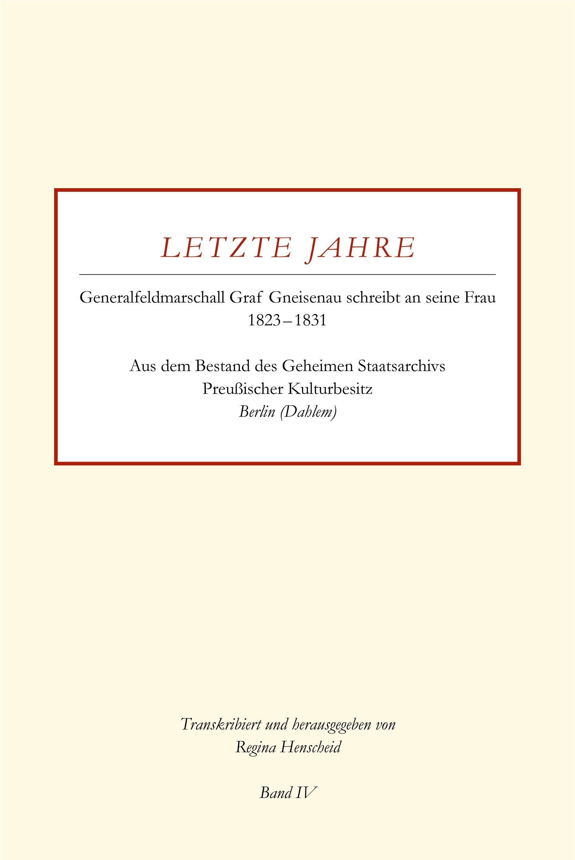 Letzte Jahre / Generalfeldmarschall Graf Gneisenau schreibt an seine Frau 1823 - 1831 Band IV (německy)