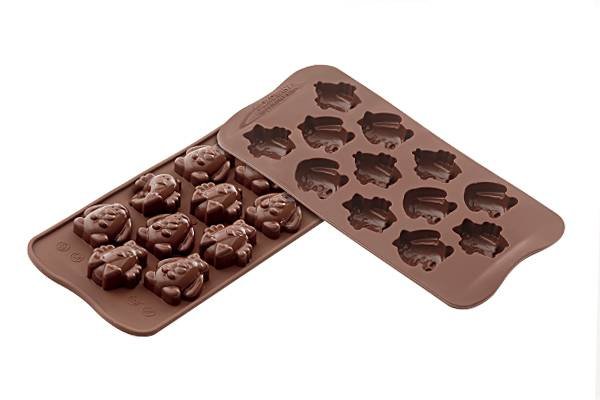 Kvalitní silikonová forma na 12 čoko zvířátek. Rozměr formy: 10,7x21,5cm.