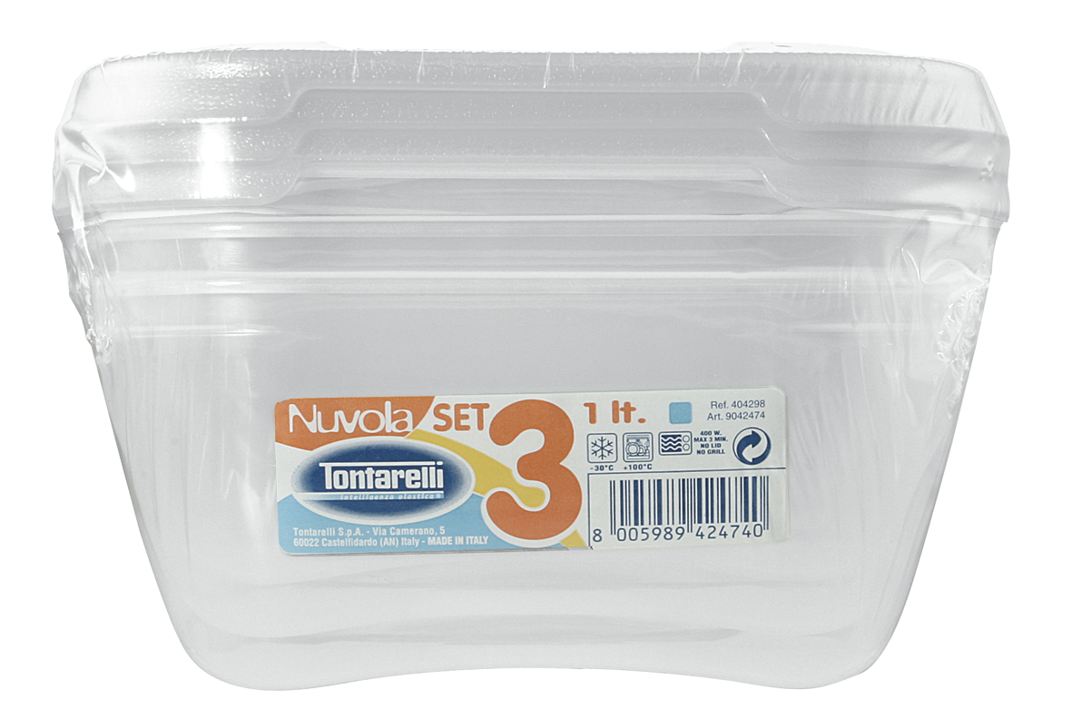 Dóza na potraviny 3x1L Nuvola bílá, 15,8x15,8xH10 cmNádoby Nuvola jsou nutností pro ty, kteří rádi připravují jídlo, udržují neustále uklizenou ledničku a mrazničku a mají po ruce nádoby vhodné do mikrovlnné trouby. Jsou lehké a odolné, jsou vybaveny nasazovacím víkem proti kapání a nemají...