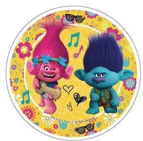 Jedlý papír Trollové a Poppy. Průměr papíru je 21 cm. číst celé