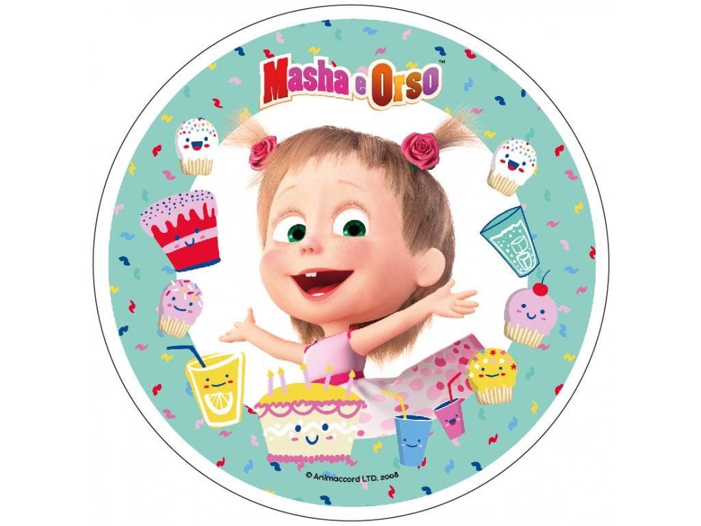 Jedlý papír s pohádkovými motivy – Máša a medvěd s dortíky. Průměr 21 cm. číst celé