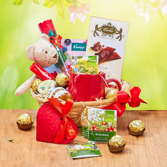 S naším košíčkem uděláte radost nejen mamince.1 x plyšový méďa1 x čokoláda Carla1 x červený hrnek 1 x tyčinka MonCheri2 x Fefferro Rocher1 x krabička srdce s mašlí1 x sůl do koupele1 x mýdlová růže1 x čaj pečený1 x med4 x čaj sáčkovýZabaleno v košíčku a celofánu s krásnou mašlí. číst celé
