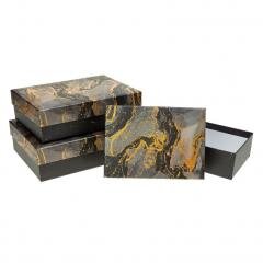 Pudełko prostokątne z kokardą 3szt marmur ROZETTE