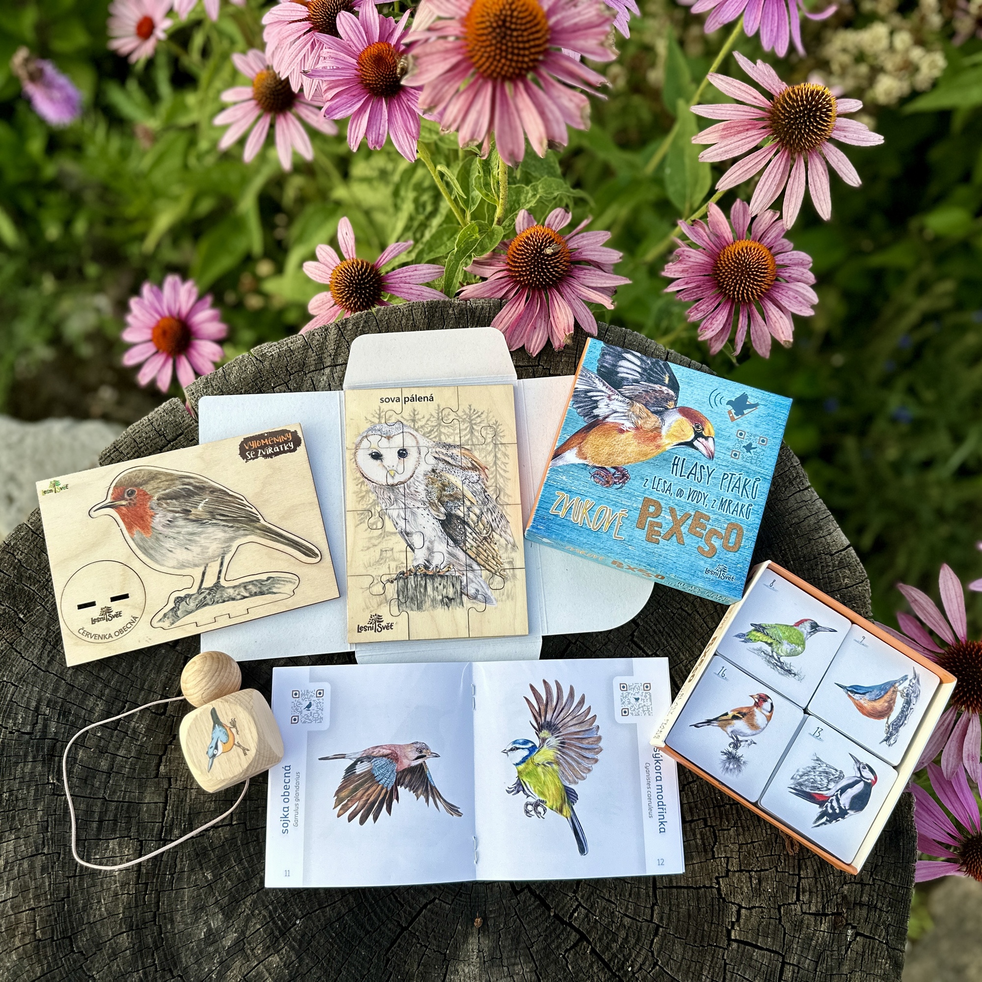 Balíček plný poznání, který zabaví velké i malé zvědavce. Balíček obsahuje výrobky, které vyrábí u nás v dílně české ruce, z kvalitního českého certifikovaného dřeva. Balení obsahuje: 1x zvukové pexeso Hlasy ptáků z lesa, od vody z mraků, 1x puzzle do kapsy sova pálená, 1x dřevěný hopík brhlík....