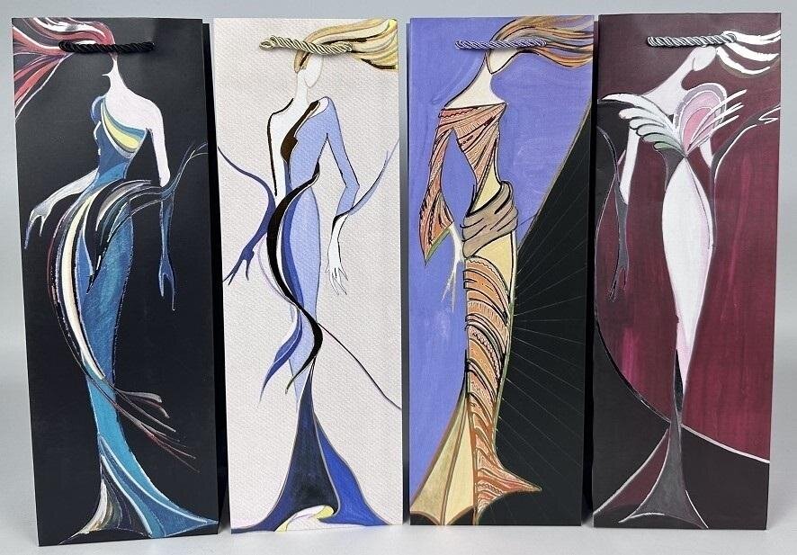 Torebka prezentowa na butelkę Premium. Materiał karton 210 gr. Brokatowe elementy ozdobne. Uchwyt ze sznurka.Mix 4 wzorów. Towar wydawany losowo. číst celé