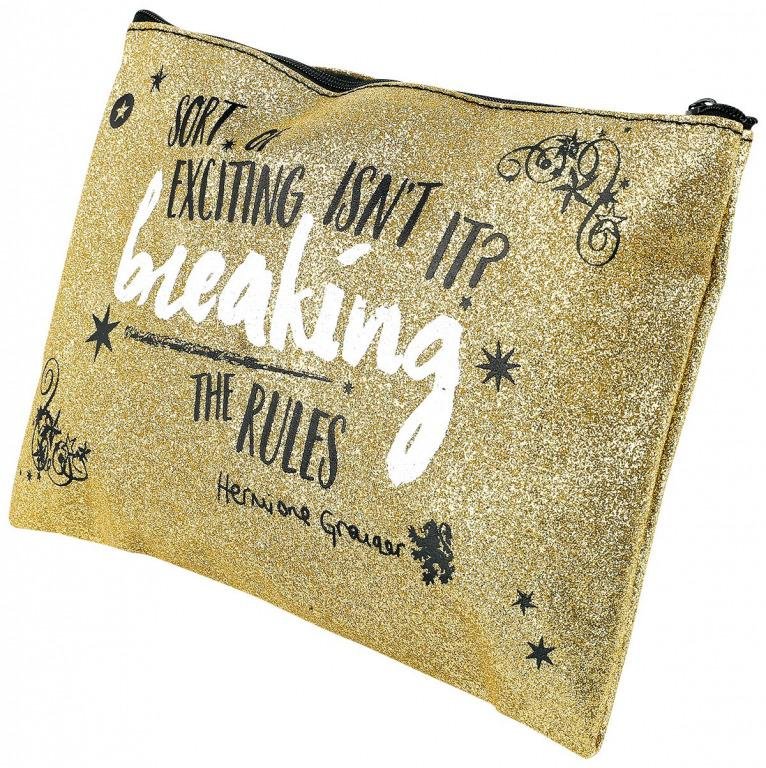 Pouzdro na psací potřeby nebo pouzdro na papíry formátu A5 pro fanoušky Hermiony Grangerové z Harry Pottera zdobí slavné citáty této Harryho věrné kamarádky. Pouzdro má zavírání na zip a jeho povrch je posetý zlatavými třpytkami. číst celé