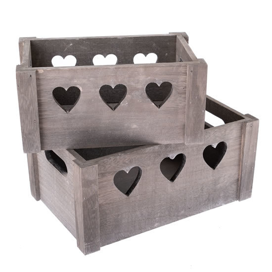 Sada dřevěných bedýnek se srdíčky - šedá 2 ks